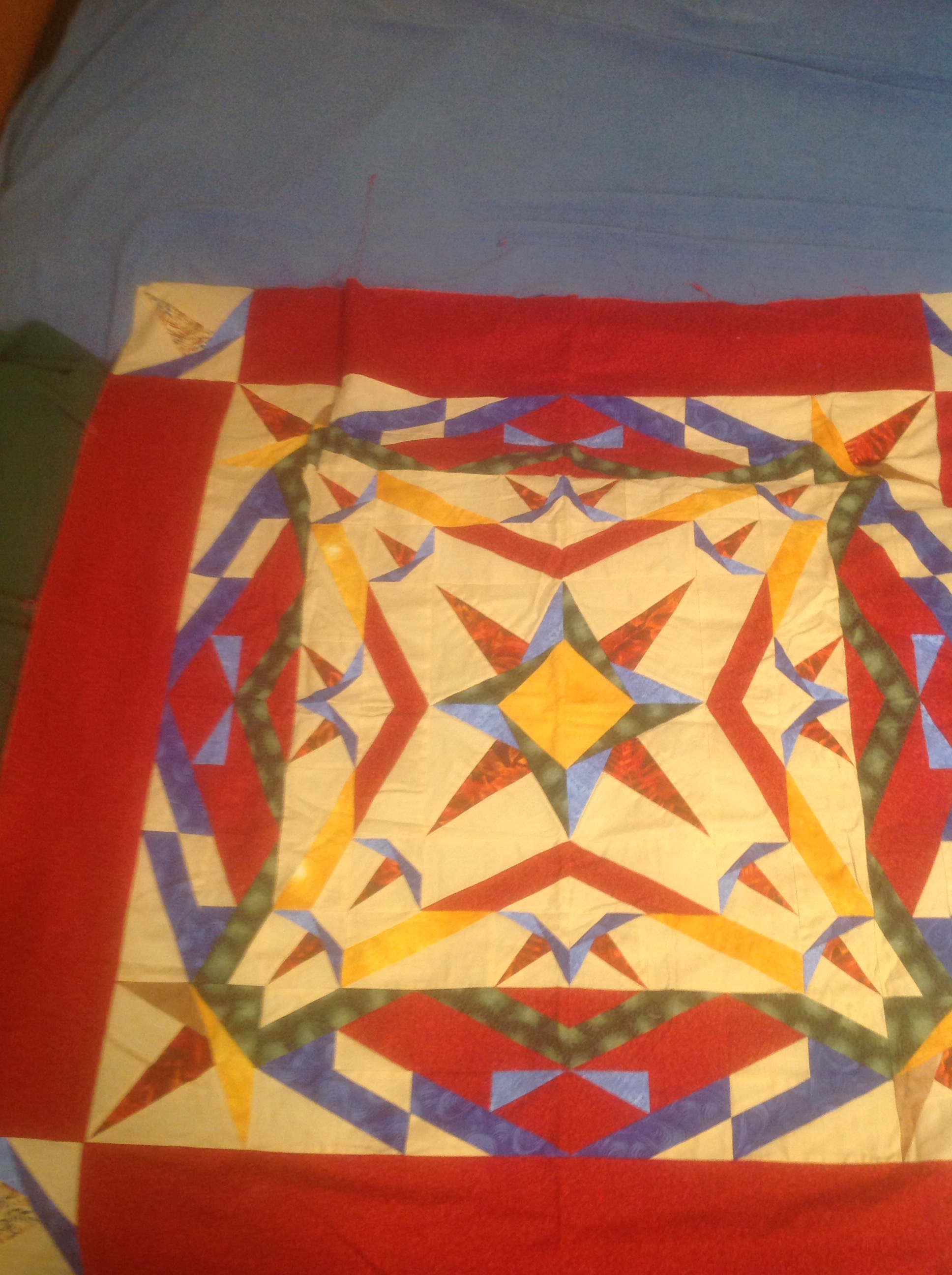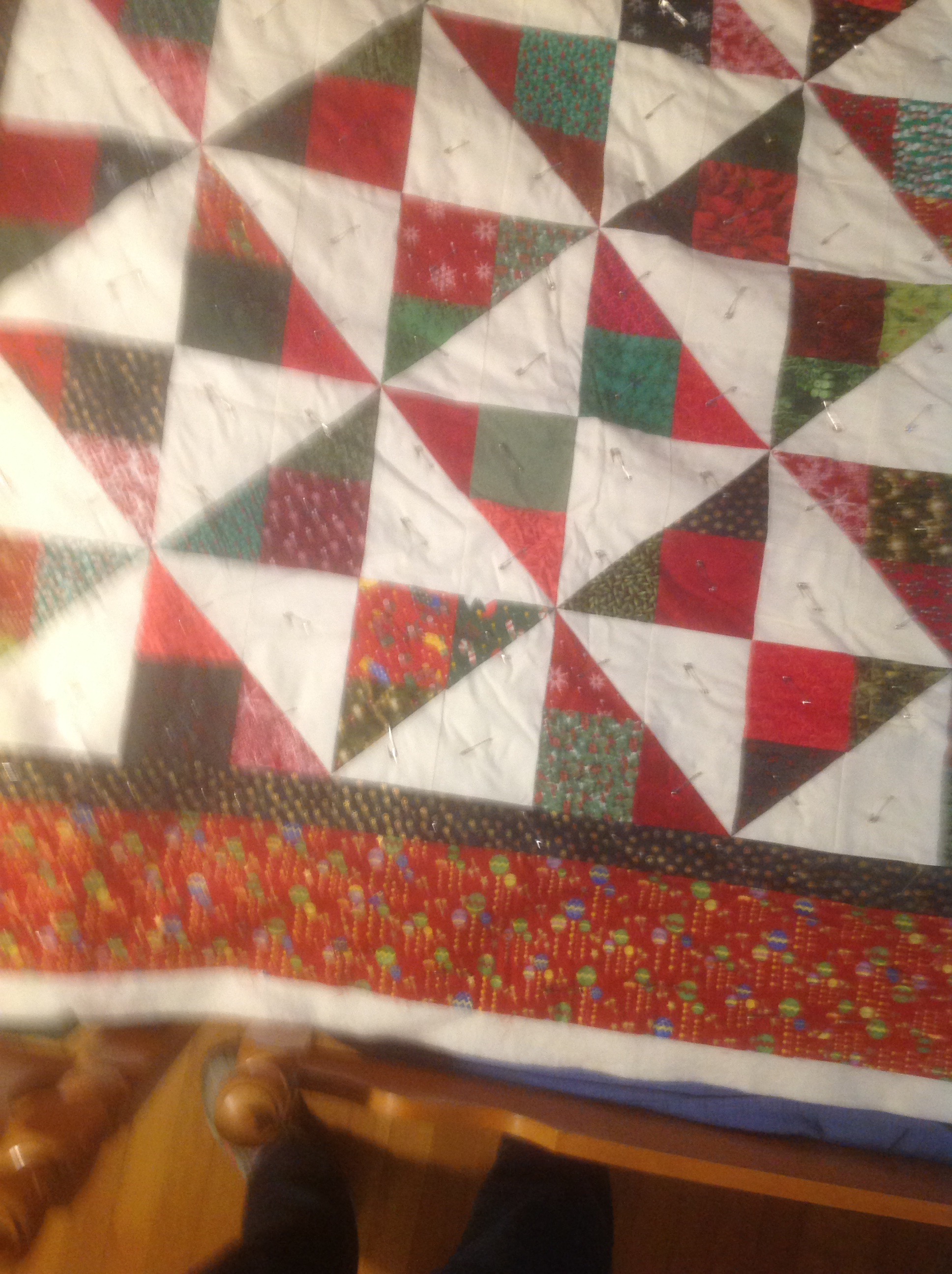 This one is basted and even has part of one corner quilted.