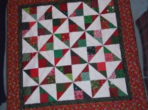 My other finish this quarter was this cheerful Christmas quilt. It was part of an exchange coordinated through Quilt Addicts Anonymous in 2015. Here is the pattern: